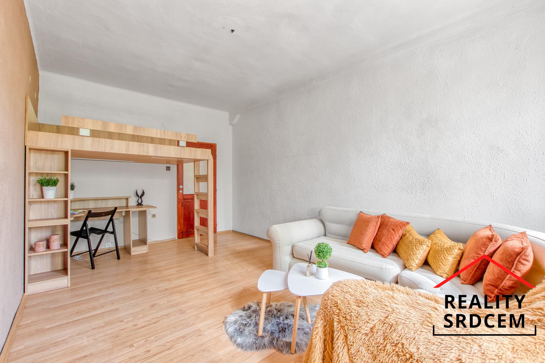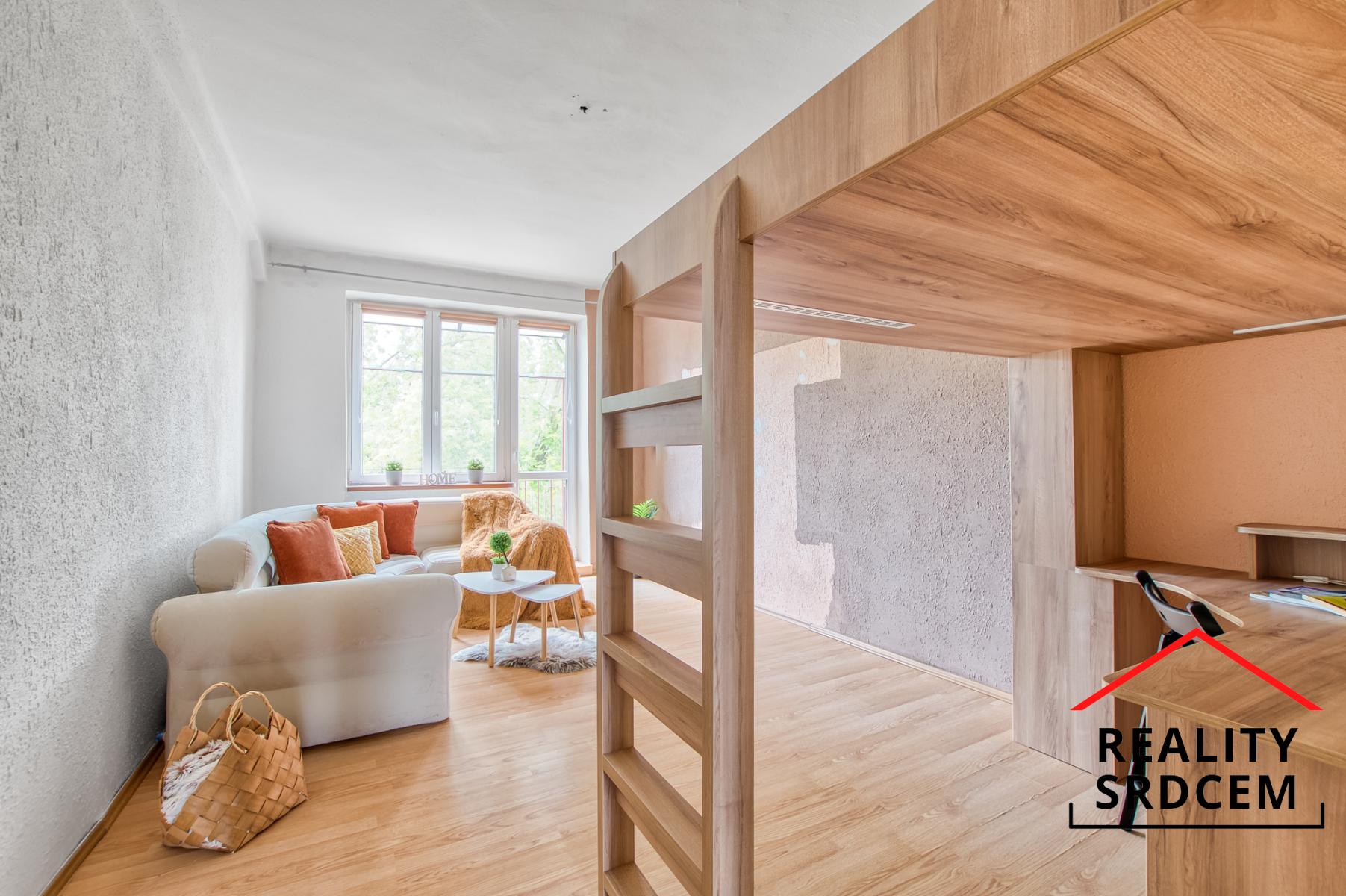 Dva samostatné pokoje přičemž obývací pokoj má výstup na balkon na jižní stranu - směr Kulturní dům. Zůstává zde manželská postel do patra, pod postelí můžete mít pracovnu a druhý pokoj je s orientací do dvora - na sever.