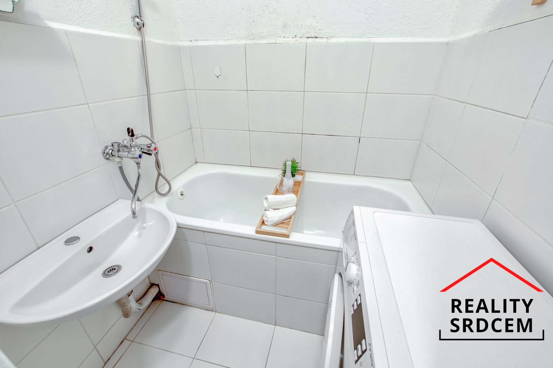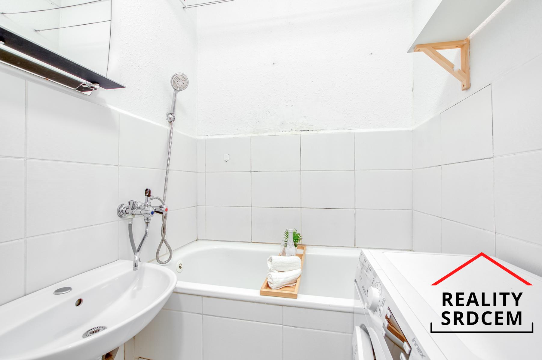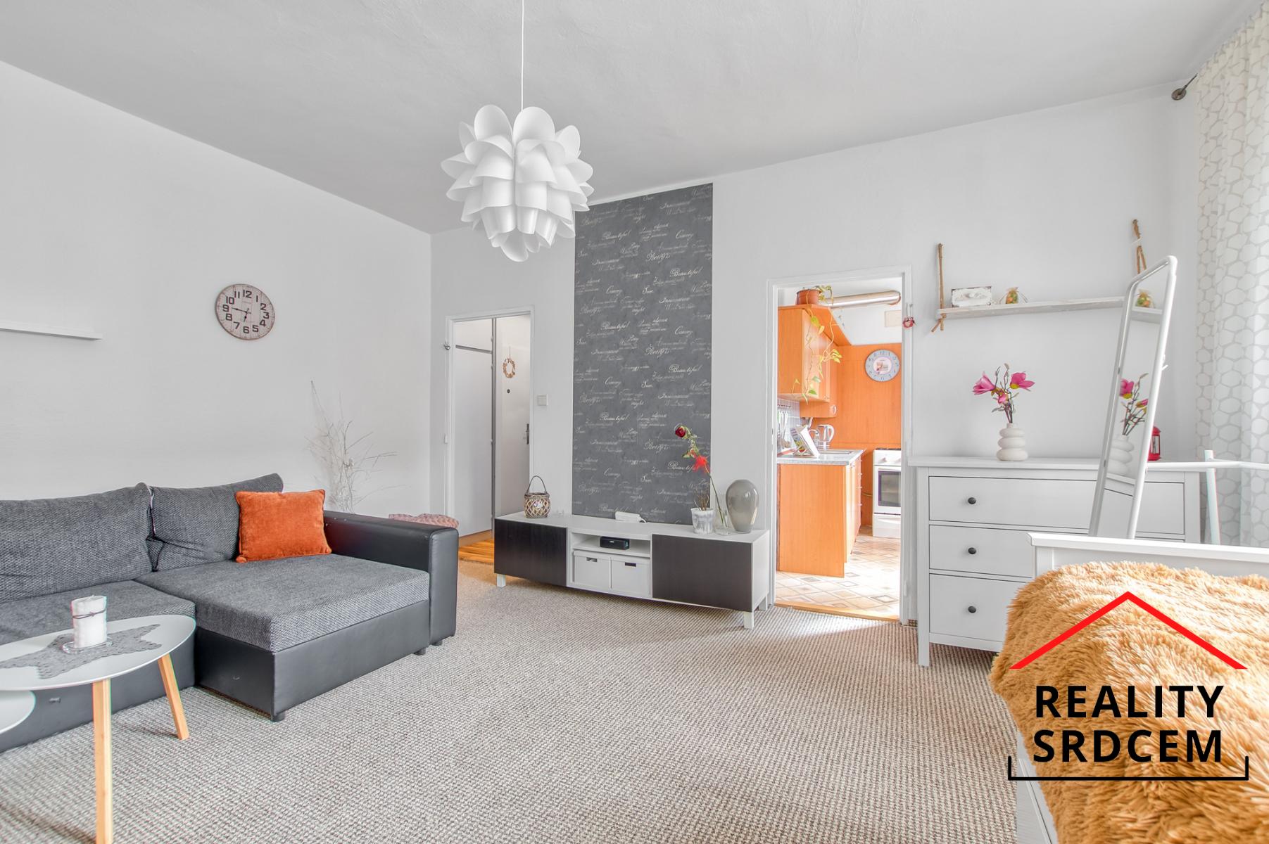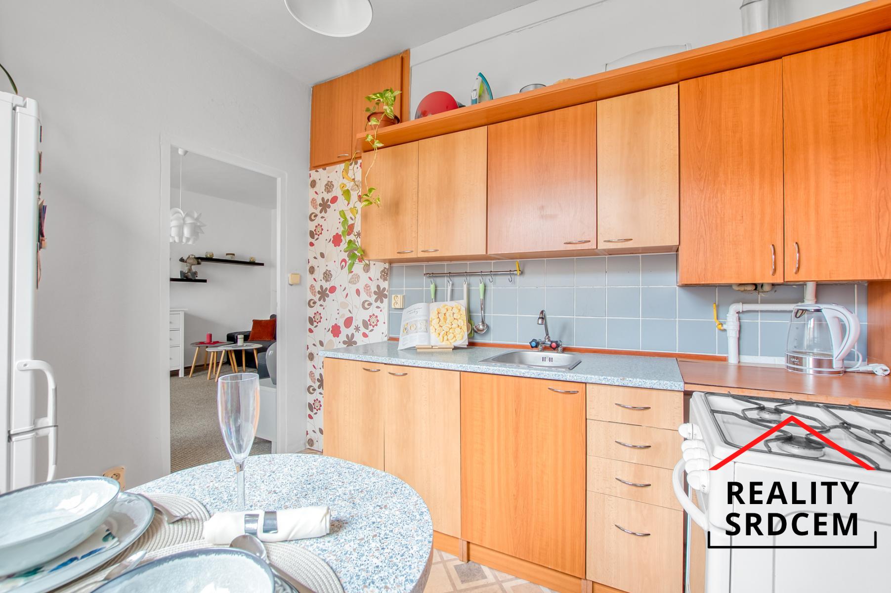 Byt prošel částečnou rekonstrukcí - původní jádro bylo obloženo keramickým obkladem, částečně nová elektroinstalace, na podlahách položená plovoucí podlaha, v kuchyni pvc a v obývacím pokoji na parketách položený koberec. V předsíni se nachází samostatné wc, koupelna s vanou a šatna, obývací pokoj je průchozí do kuchyně. V kuchyni je zánovní kuchyňská linka s plynovým sporákem, ohřev teplé vody zajištěn přes průtokový plynový kotel. Byt se prodává bez vybavení.