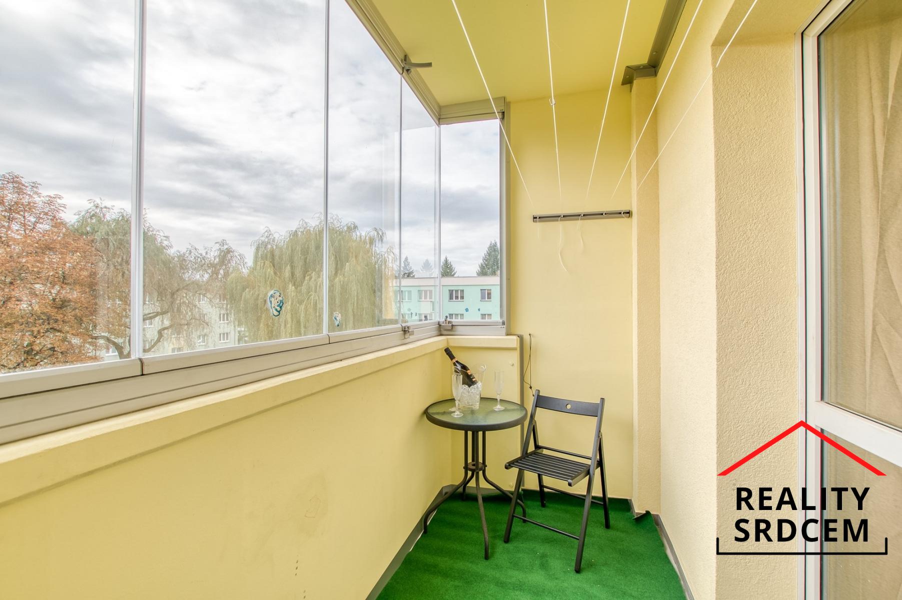 Zvětšený obývací pokoj je průchozí do dvou samostatných ložnic. Z jedné z nich je vstup na zasklenou lodžii, ideální k posezení či relaxaci. V prostorné předsíni se nachází šatní skříň s dostatkem úložného prostoru.
