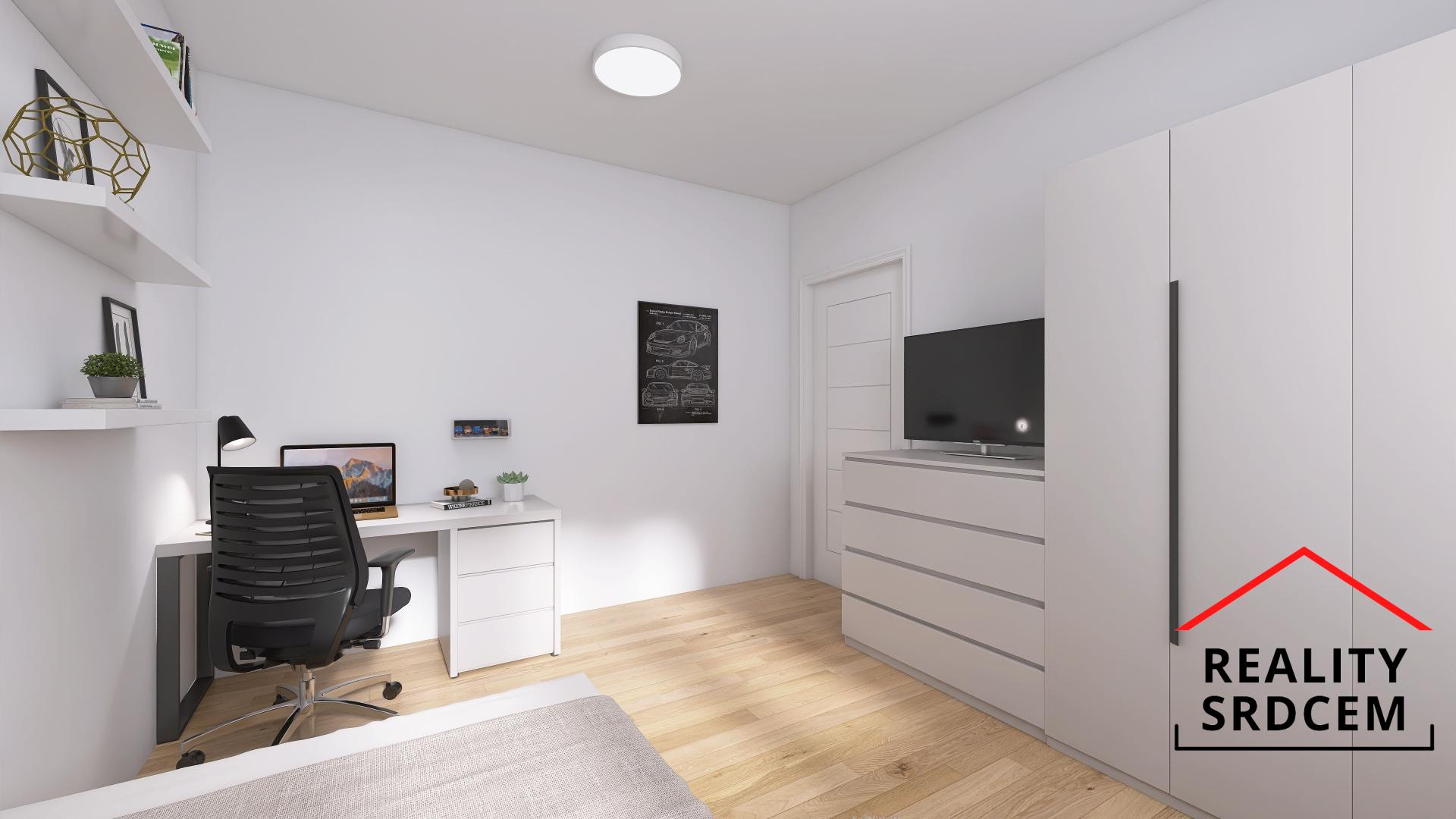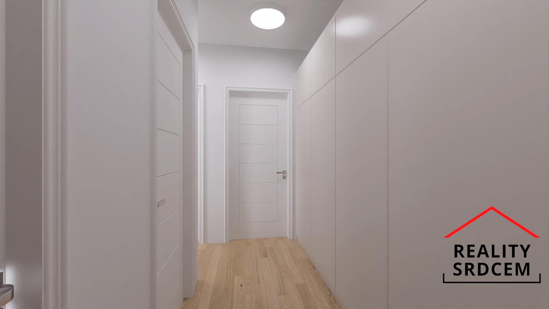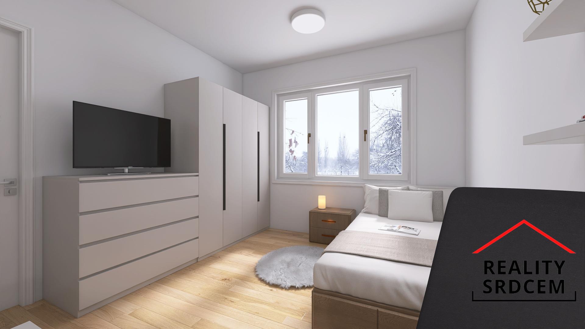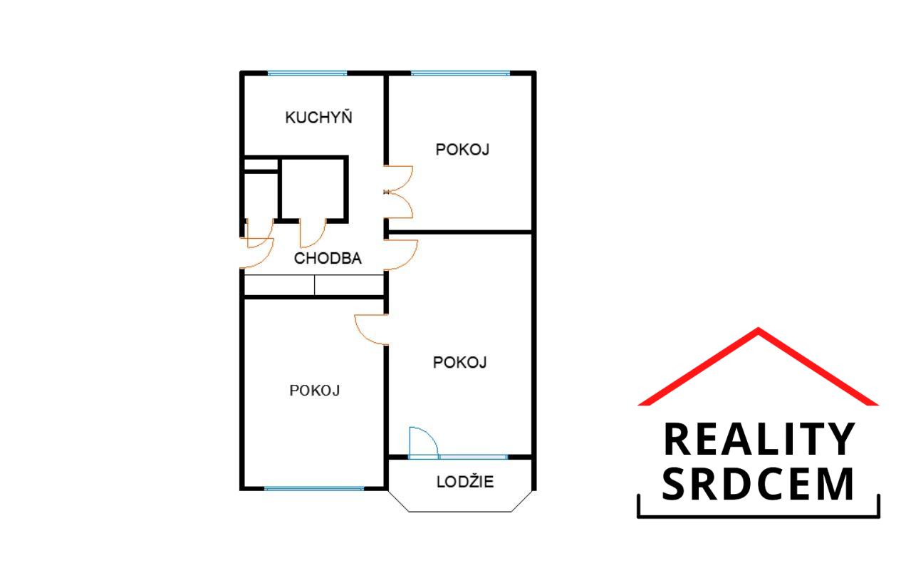 Dominantou bytu je obývací pokoj se vstupem na velkou zasklenou lodžii, která nabízí příjemný prostor pro relax i posezení. Z obývacího pokoje je vstup do ložnice, dětský pokoj je samostatný. Prostorná předsíň poskytuje dostatek místa pro úložné prostory.