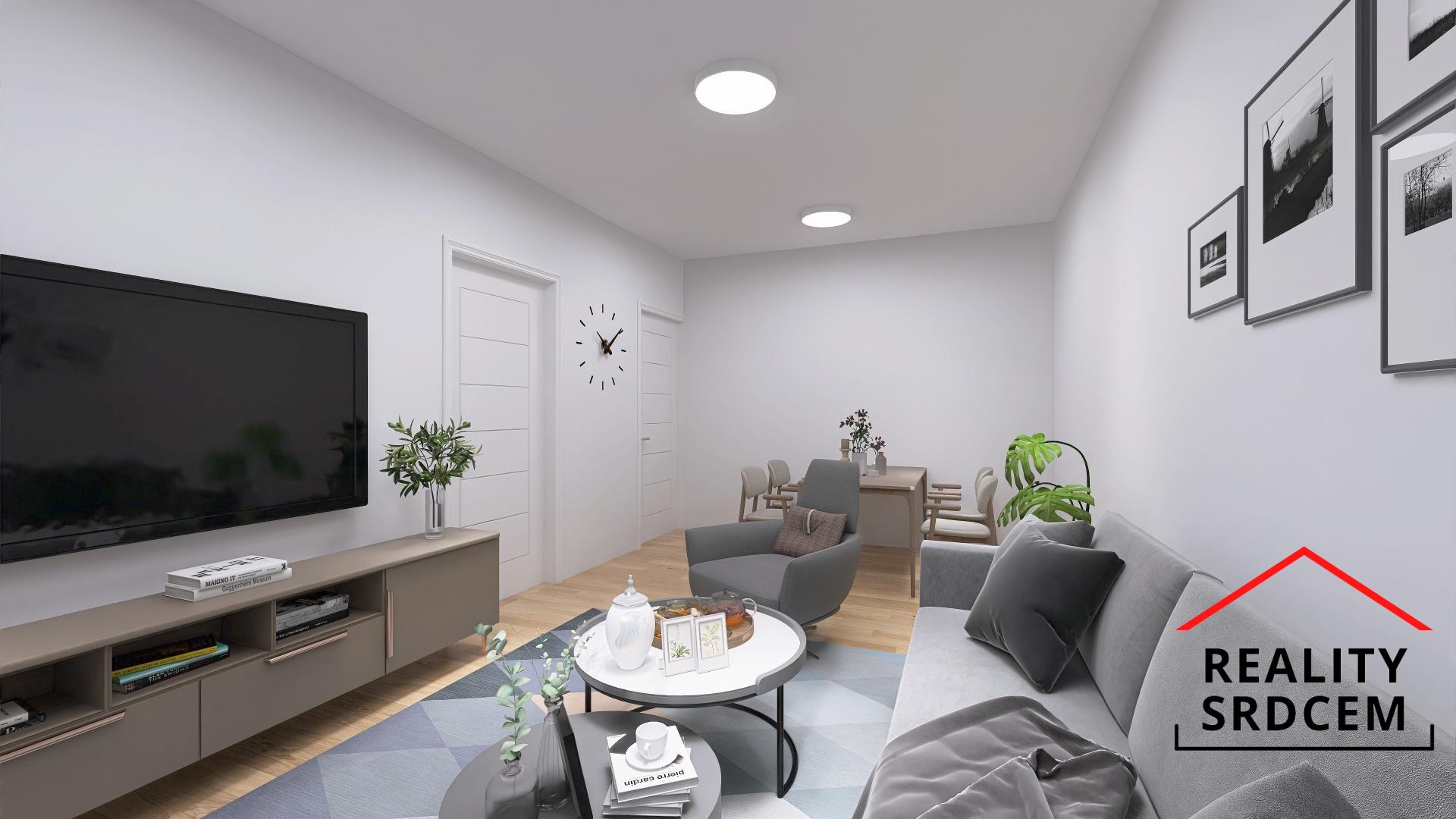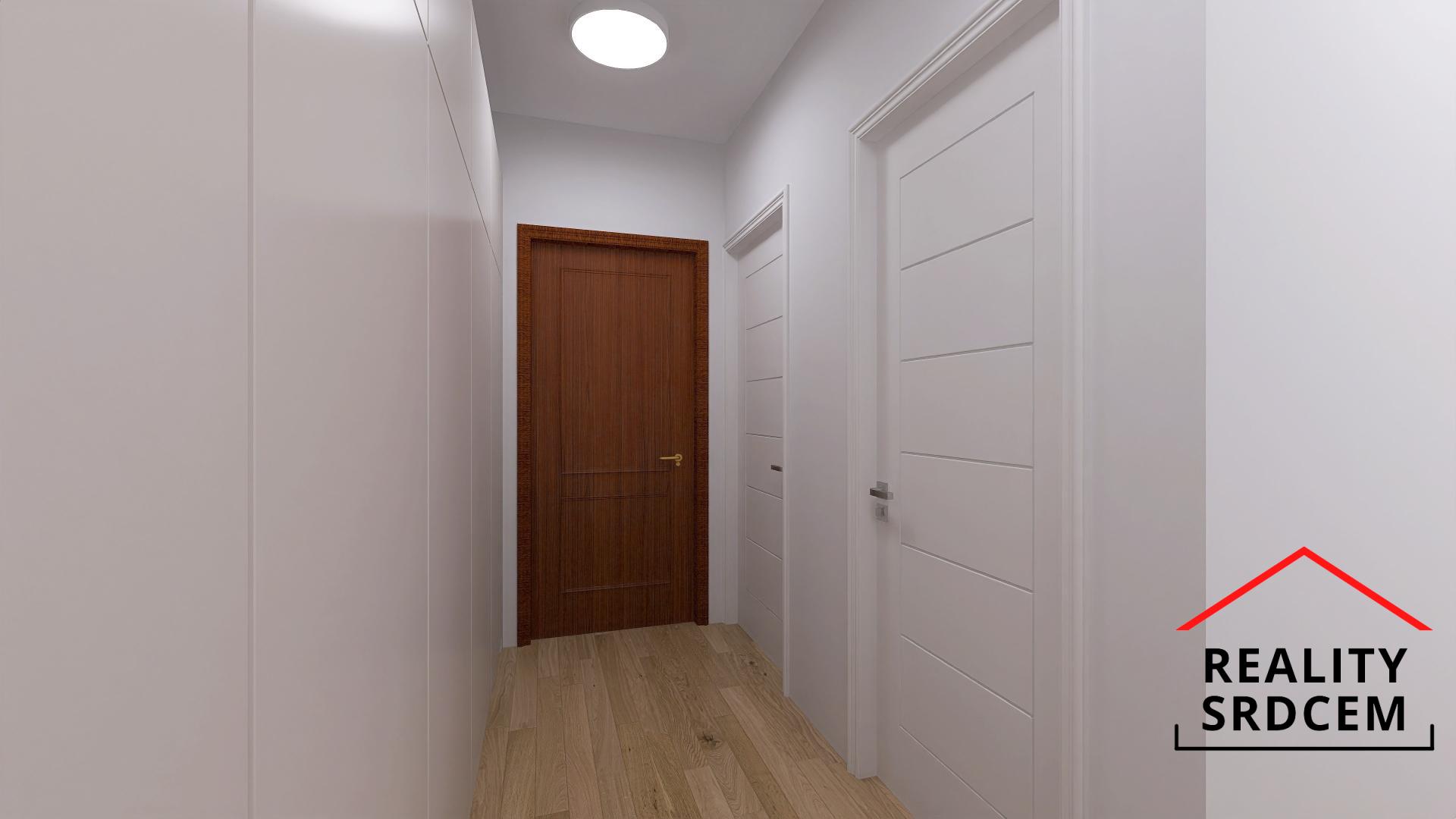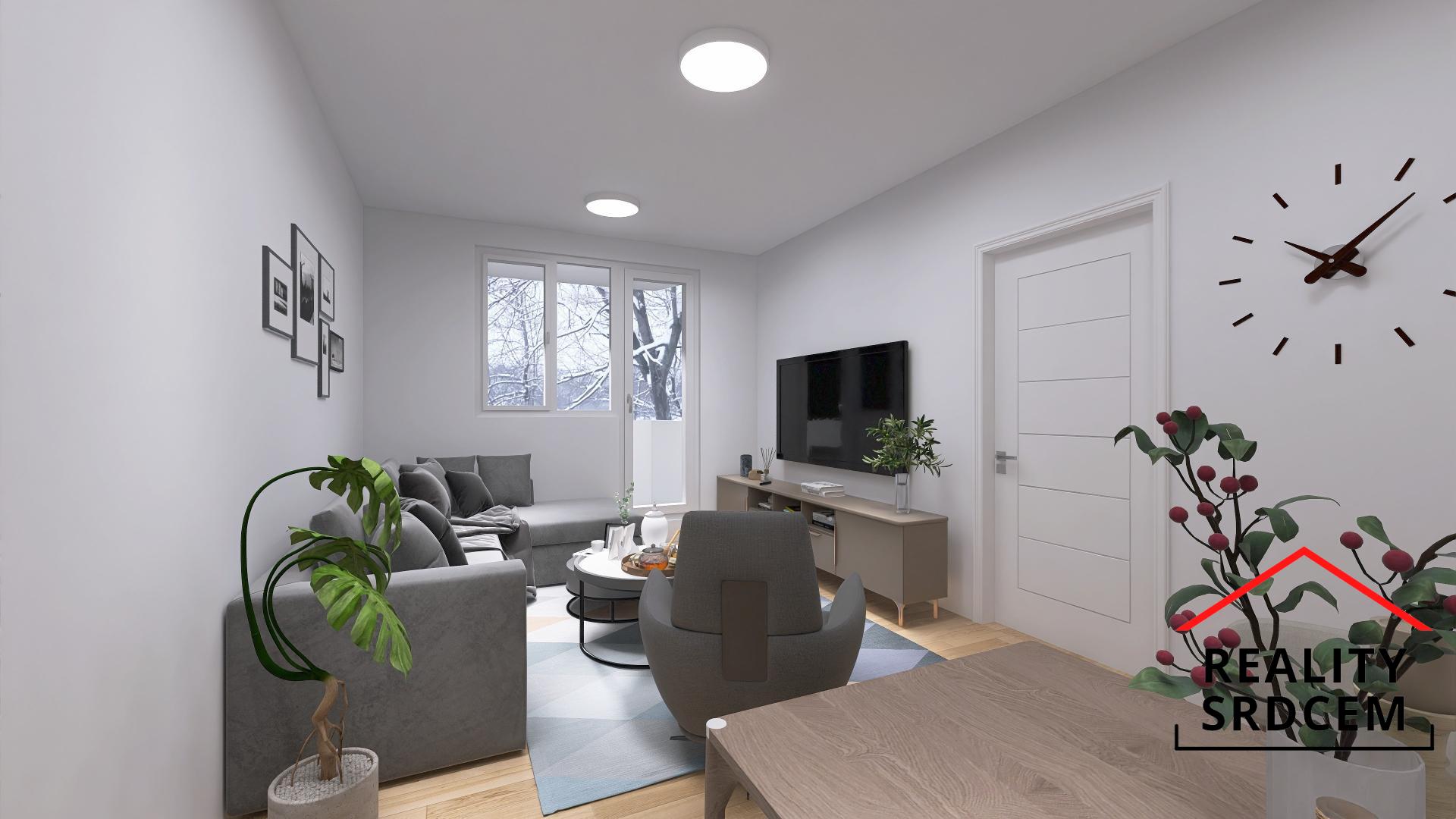 Dominantou bytu je obývací pokoj se vstupem na velkou zasklenou lodžii, která nabízí příjemný prostor pro relax i posezení. Z obývacího pokoje je vstup do ložnice, dětský pokoj je samostatný. Prostorná předsíň poskytuje dostatek místa pro úložné prostory.