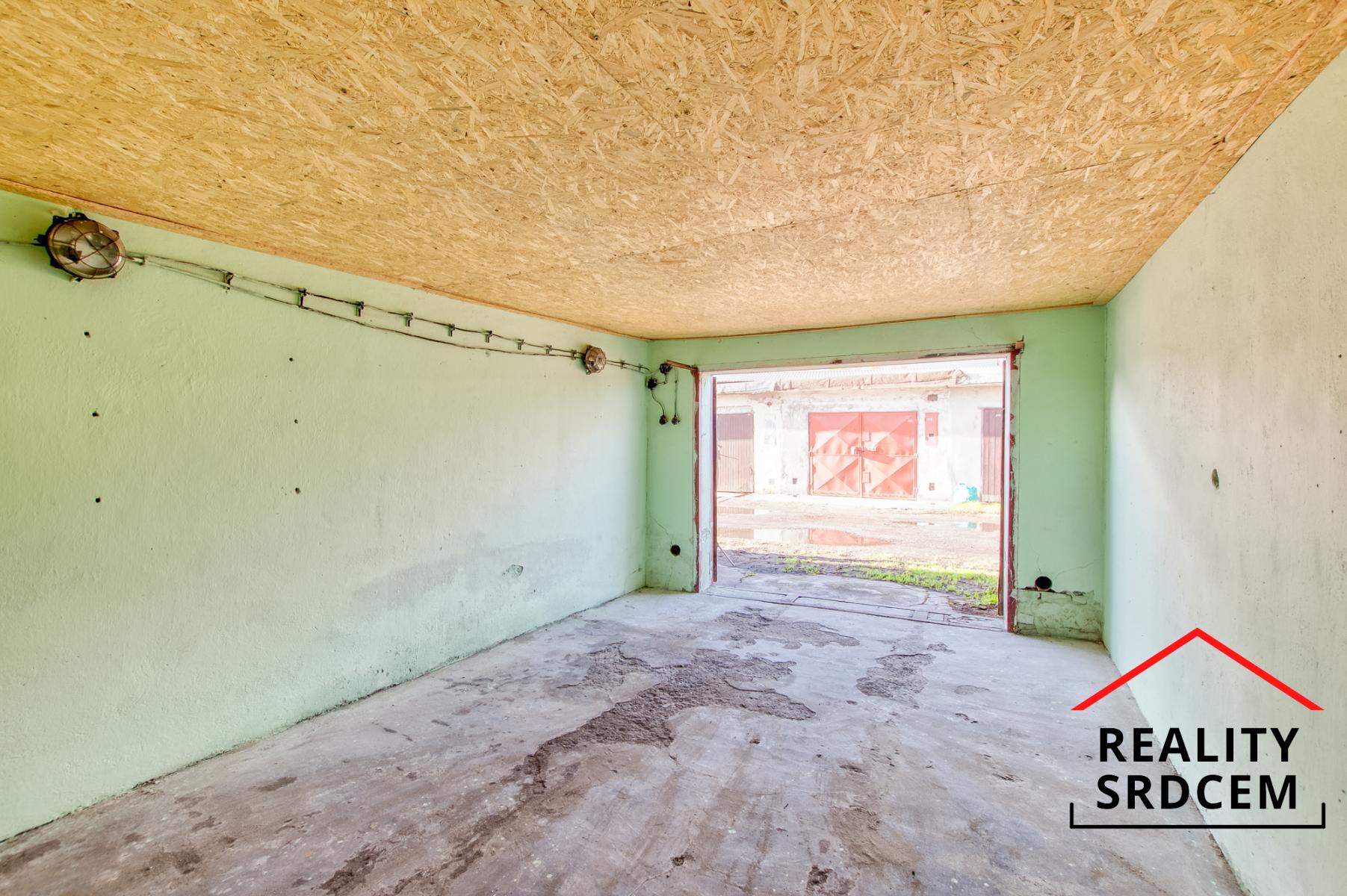 Garáž je o velikosti 5,3 x 3,5, právě byly dokončené úpravy - střecha mírně pultová s novou krytinu - IPA, z části vyměněné desky a trámy za nové, nové osb desky po celém stropě, vrata jsou dřevěná a oplechována, možnost připojení vlastního elektroměru - v tuto chvíli odpojen, uvnitř v garáži jsou 3 zásuvky.