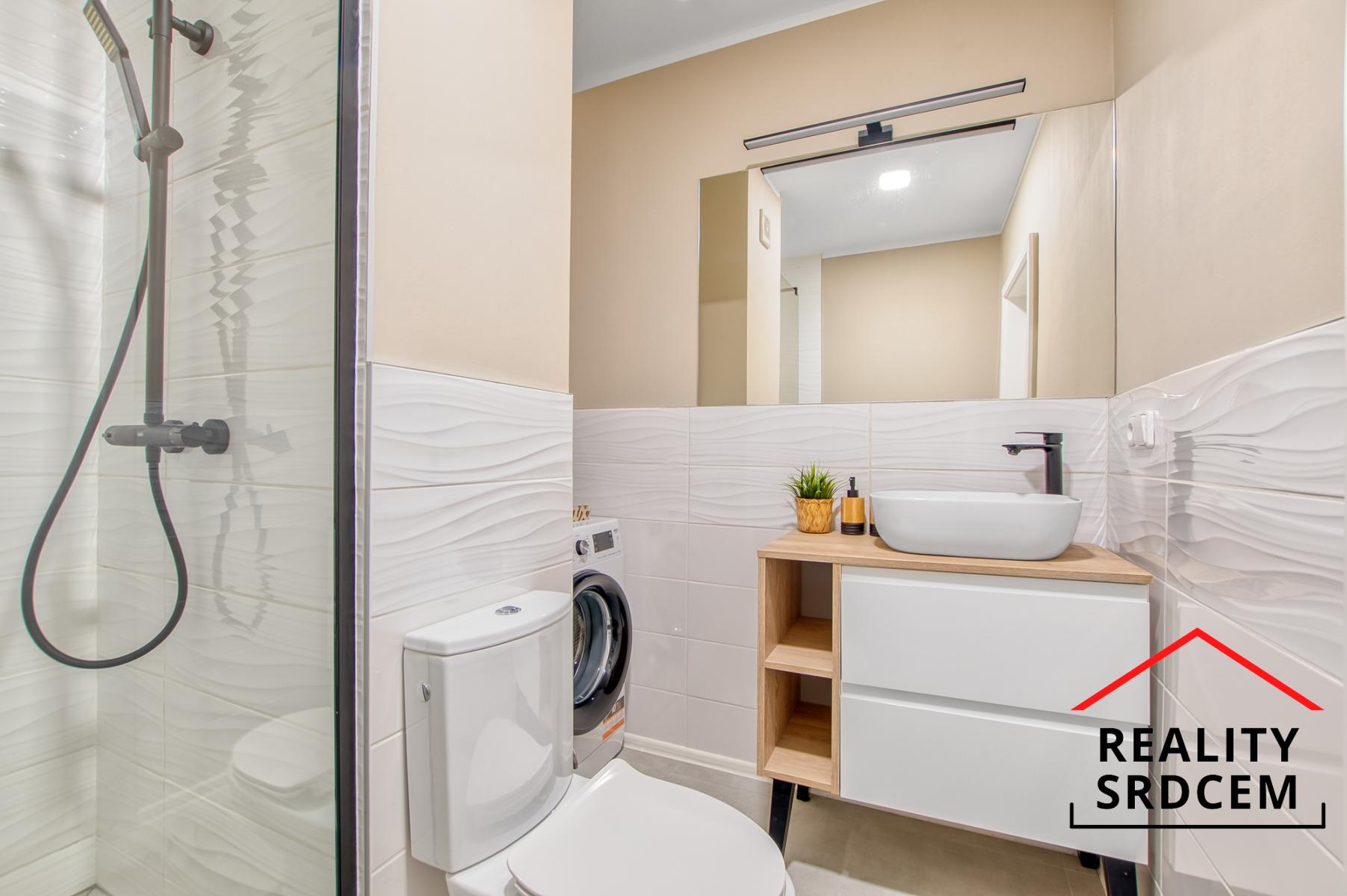 Byt prošel celkovou moderní rekonstrukci, při které bylo vyměněné bytové jádro, koupelna s prostorným sprchovým koutem a wc dohromady - zůstává zde pračka, podsvícená moderní kuchyňská linka se zabudovanými spotřebiči - lednice s mrazákem, horkovzdušná trouba, sklokeramická varná deska, digestoř, barový ostrůvek.
