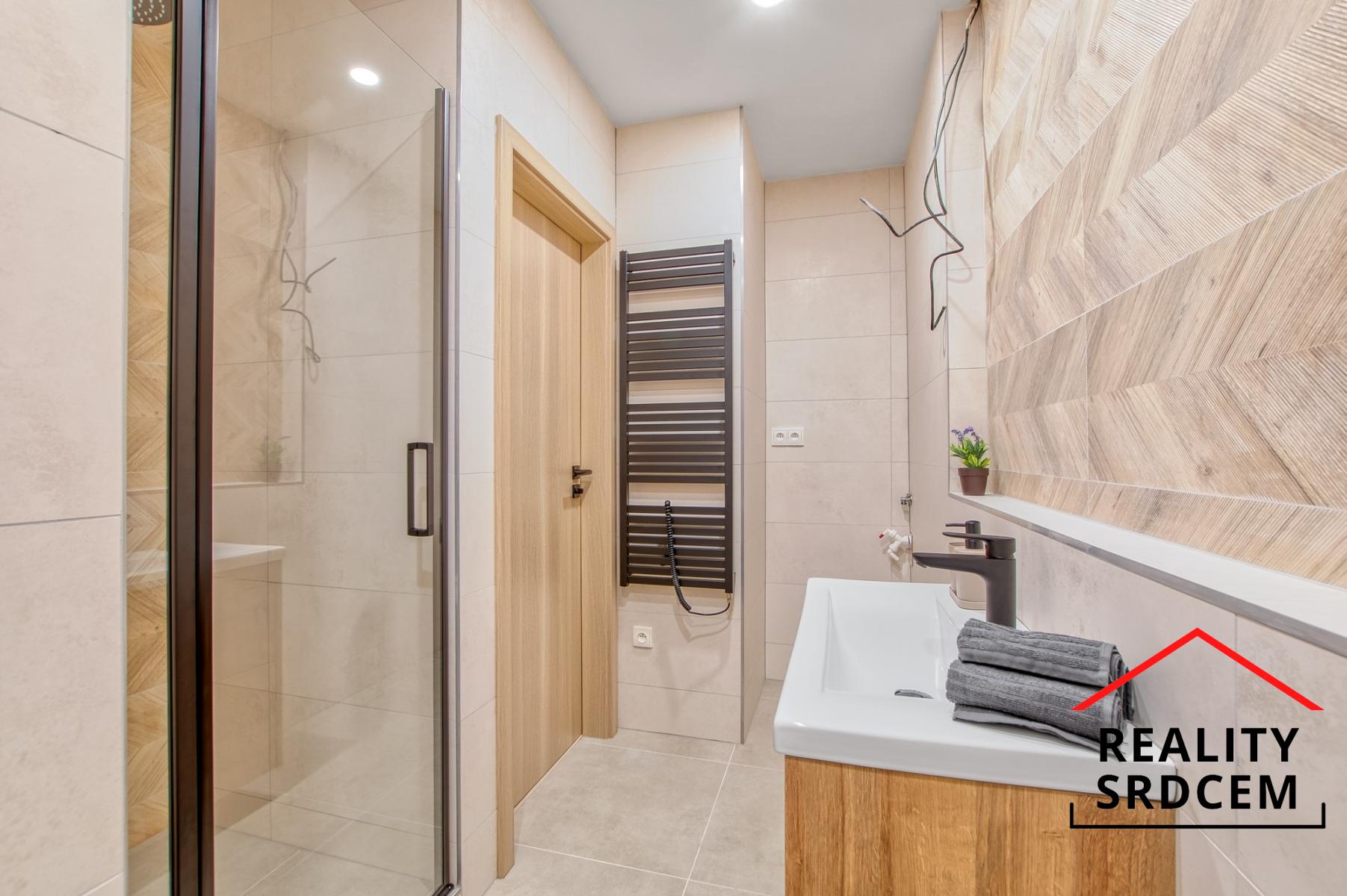 Byt právě prošel celkovou moderní rekonstrukci, kterou navrhoval bytový architekt a prováděla kvalitní stavební firma. Vše je řešeno v příjemných světlých odstínech s černými doplňky. Na míru řešena kuchyňská linka v béžových tonech s ledkovým podsvícením a se zabudovanými spotřebiči - varná plynová deska, horkovzdušná trouba, mikrovlnná trouba a myčka. Nové vstupní a interiérové dveře s obložením, kvalitní vinylová podlaha. Moderní a zvětšená koupelna se sprchovým koutem a wc, možnost připojení pračky a prostor je i na sušičku. Z obývacího pokoje je výstup na lodžii, která má krásný výhled na Karvinský kostel, který se nachází na náměstí.