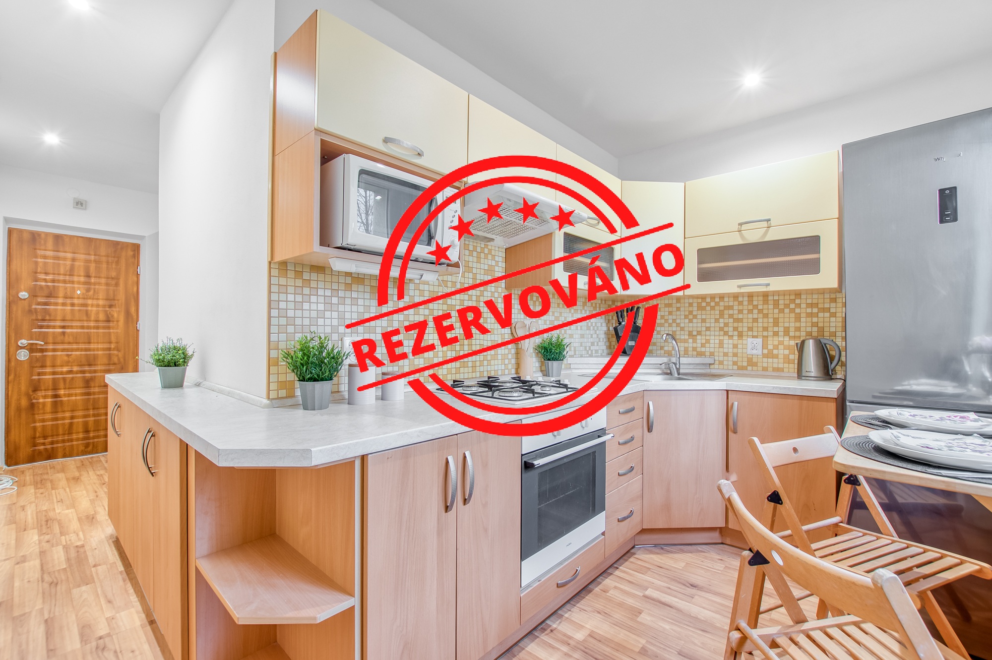 Jedná se o středový byt, který prošel před 8 lety celkovou moderní rekonstrukci, při které bylo vyzděné bytové jádro, provedena nová elektroinstalace vedena v mědi, snížené stropy s bodovým osvětlením, kuchyňská linka se zabudovanými spotřebiči - elektrická trouba, varná plynová deska, digestoř, v předsíni i v ložnici zůstávají šatní skříně. V obývacím pokoji zůstává gauč a jsou zde položené nové plovoucí podlahy, v ložnici je na zemi koberec. Pokoje jsou prostorné a neprůchozí. Koupelna se sprchovým koutem a toaletou dohromady je obložena moderním keramickým obkladem.
