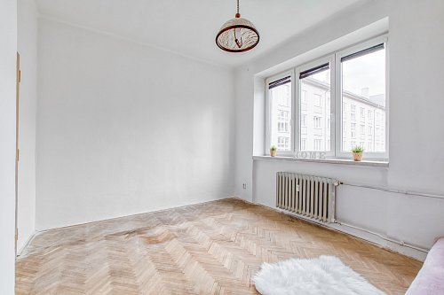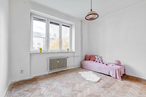 Byt je v původním stavu vhodný k rekonstrukci podle Vašich představ. Byla zde vyměněna kuchyňská linka a provedena z velká části elektroinstalace v mědi. Obývací pokoj, odkud je výstup na balkon, je možné probourat s prostornou kuchyní a vytvořit tak moderní propojení kuchyně s obývacím koutem. Z obývacího pokoje je vstup do ložnice a zůstává jeden samostatný dětský pokoj. Spací pokoje jsou orientované na západní stranu do vnitrobloku.