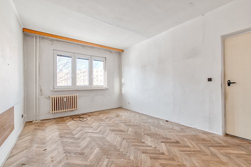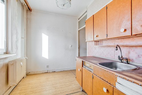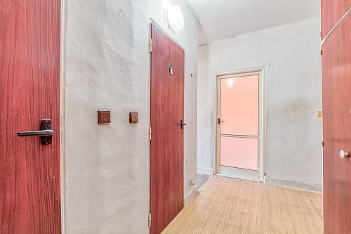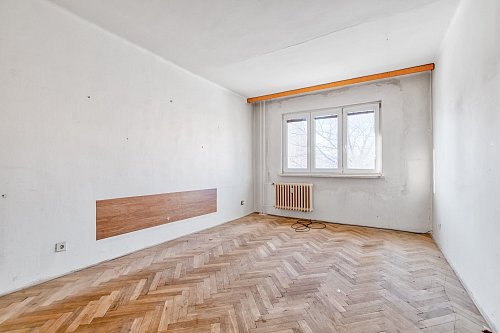 Jedná se o středový byt v původním stavu, kde oba pokoje jsou prostorné a neprůchozí o velikosti 17 m2. S touto dispozicí můžete ještě pracovat. Pokud by jste toužili po kuchyni propojené s obývacím pokojem, tak tady to možné je. Z obývacího pokoje je výstup na lodžií. Celý byt je orientovaný do dvora na západní stranu.