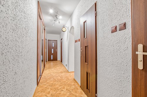 Byt má zděné jádro, elektroinstalaci vedenou v mědi, snížené stropy, nové interiérové dveře a novější vstupní bezpečnostní dveře. Na míru řešená kuchyňská linka se zabudovanými spotřebiči - horkovzdušná trouba, varná plynová deska, digestoř. Koupelna se sprchovým koutem, wc zvlášť, v předsíni řešená šatní skříň na míru.