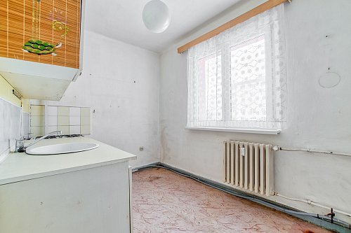 Byt je v původním stavu, což je ideální příležitost vytvořit si bydlení přesně podle vlastního vkusu a představ. Žádné kompromisy navrhnete si vše od podlahy až po kuchyň.