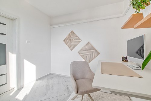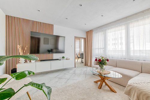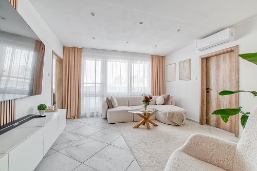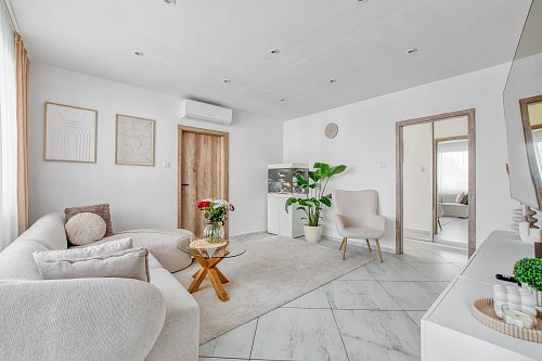 U této rekonstrukce byl kladen důraz na kvalitní materiály, moderní design a praktické využití prostoru. Díky tomu byt nabízí příjemnou atmosféru a komfortní bydlení bez nutnosti dalších investic.